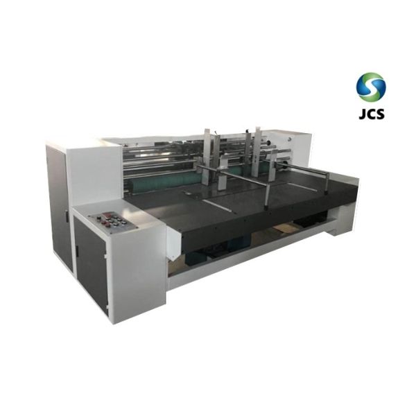 The machine adopts vacuum adsorption auxiliary paperboard feeding system (air volume isadjustable), with the function which can complete the slotting, angle-cutting, slitting, creasing etc. of corrugated paperboard in one time. Slotting depth of this machine is with electric adjustment, and equipped with the scale reading. Slotting phase adjustment is to the planetary gear structure, adopting the electric computer type 360 degrees adjustment, and the upper and lower slotting knife disc and creasing wheels can synchronous moving to left or right, (note: some special tool to adjust the movement), it is easy to use and maintenance, compact, which is a professional in view of the small carton slotting forming equipment .